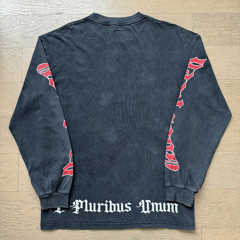 1097 # Godspeed Fashion Retro Washed Street Cotton Loose Long Sleeve T-shirt