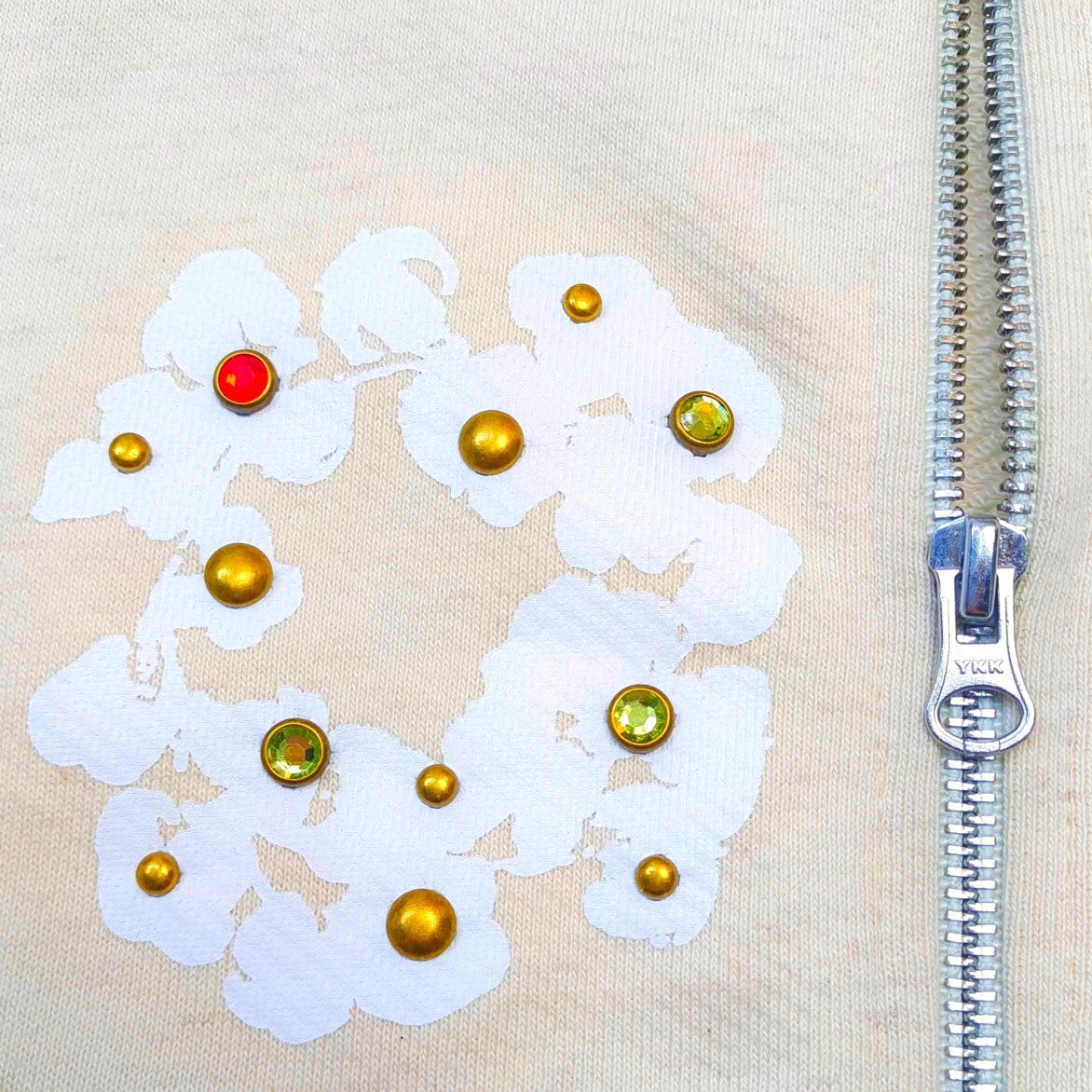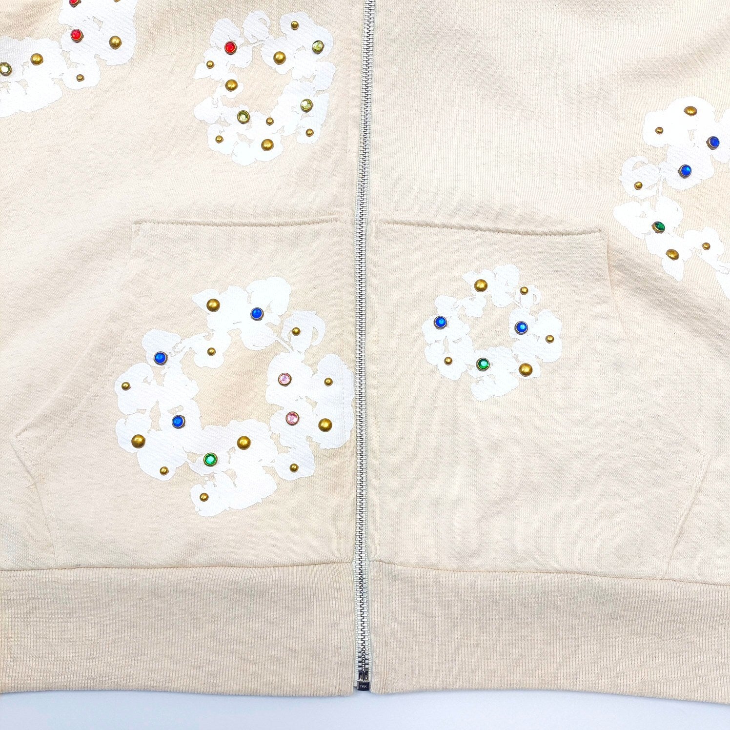 Denim Tears Rhinestone Cotton Wreath Zip Hoodie cream