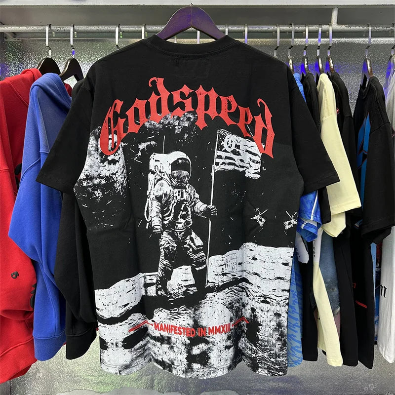 Godspeed Moon Print Double Yarn Pure Cotton Casual Short Sleeved t-Shirt