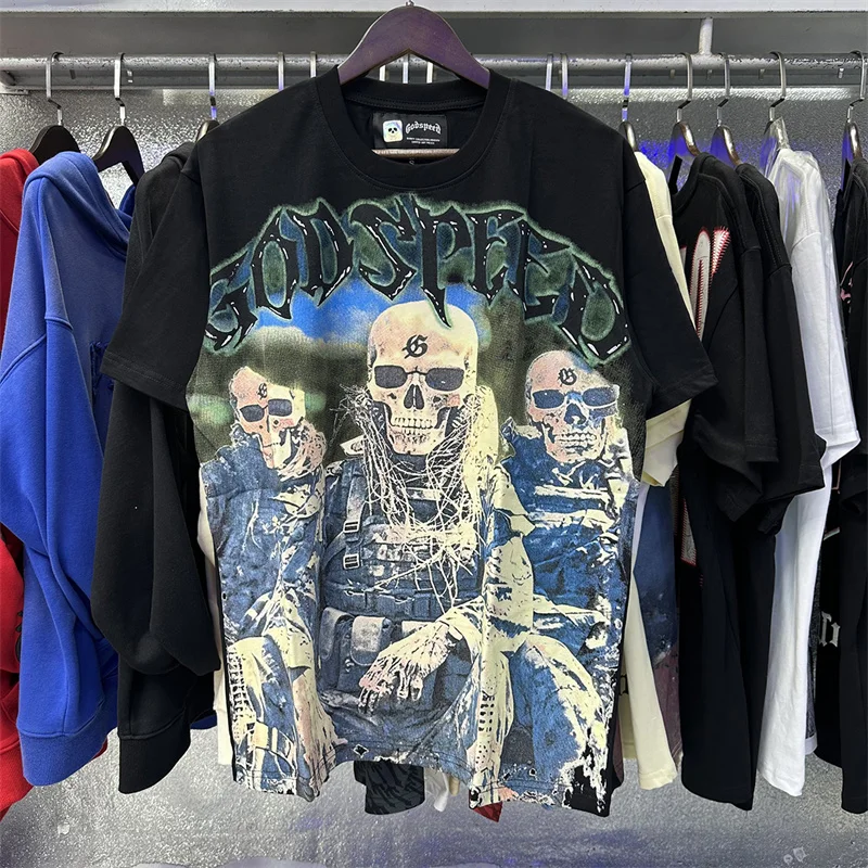 Godspeed Skeleton Printed High Weight Double Yarn Cotton Casual Short Sleeve
