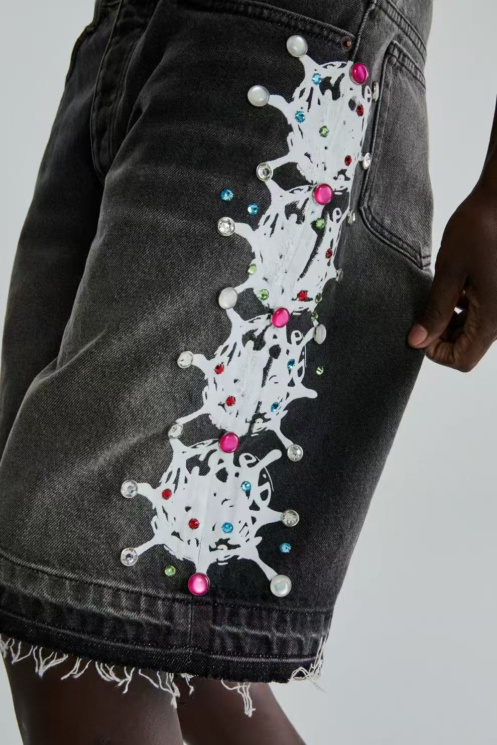 Sp5der Web Stone Denim Shorts 'Black Wash