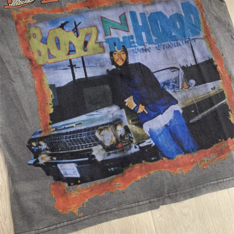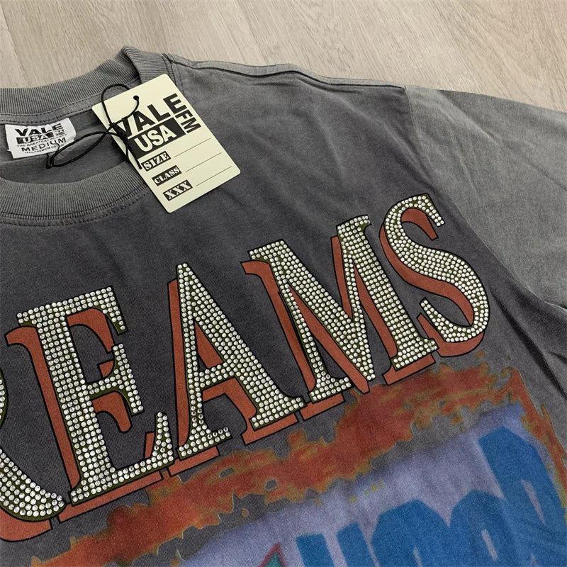 Vale Hot Diamond Washed Water Horse Willow Used Cotton Short sleeved T-shirt