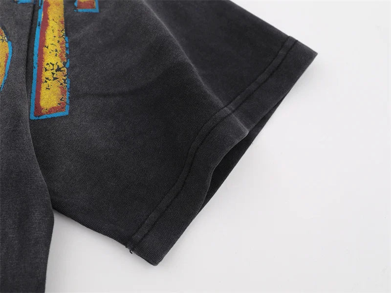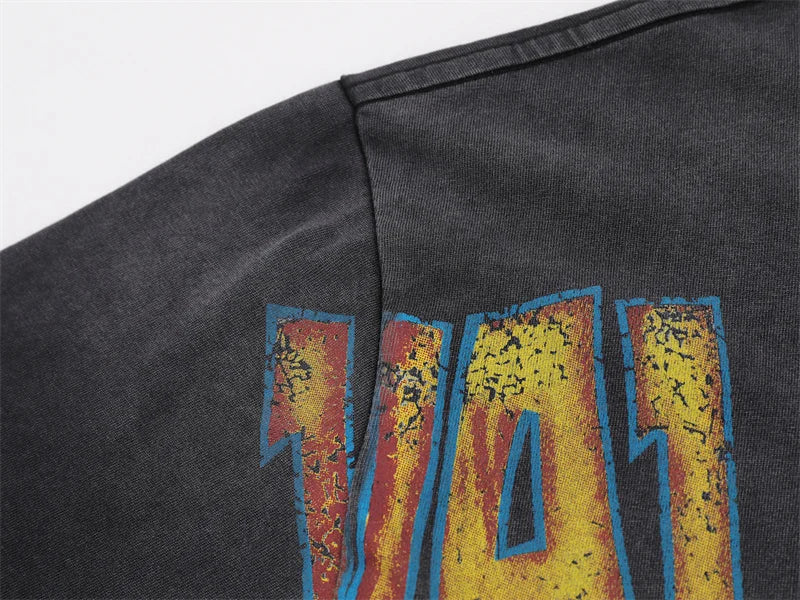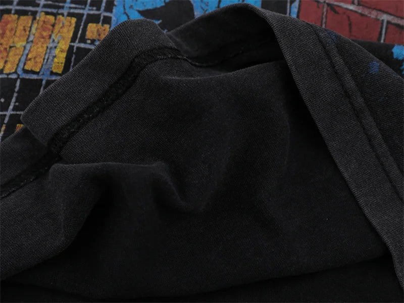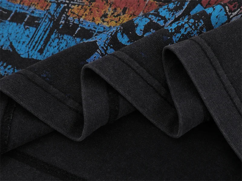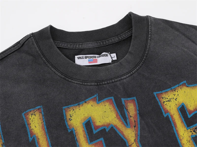 VALE2025 Retro Washed City Wall Poster Printed Fashion T-shirt