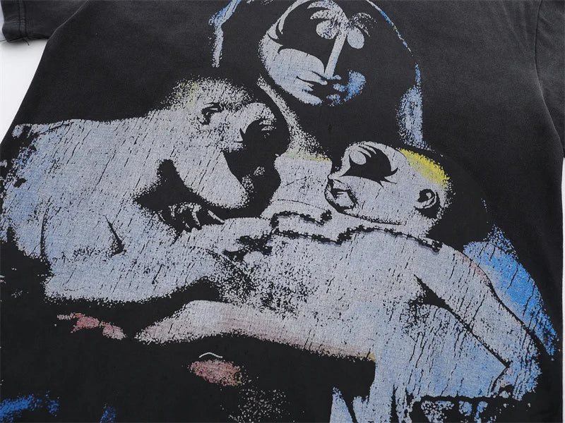 VALE2025 Retro Washed Pattern Printed Fashion T-shirt